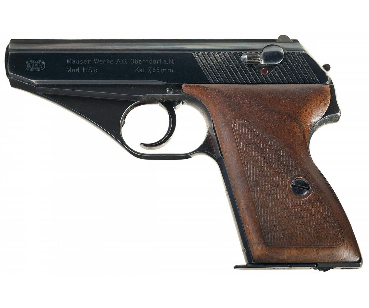 The Mauser HSc came out in 1939 and was produced by Mauser at least until 1946. The HSc was not derived from Mauser’s earlier pocket pistols. It was a totally new design, being more streamlined in appearance. Its quality is considered to be inferior to the 1910s and 1914s but still good. It was chambered for 7.65mm (.32). HSc serial numbers started at 700,000 and ran to around 952,000.